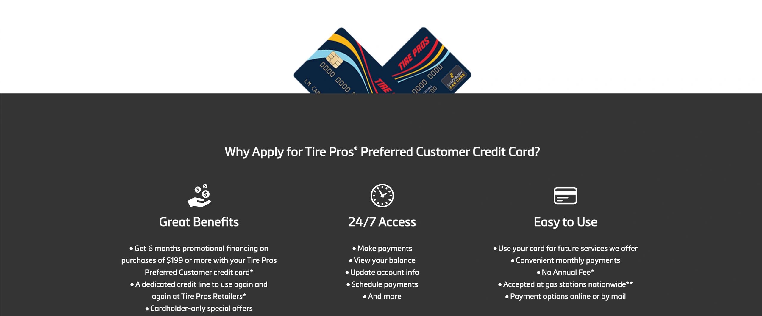Shop our unbeatable deals now and take it home today with a Tire Pros Credit Card.®